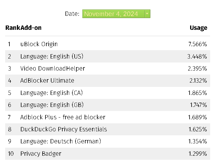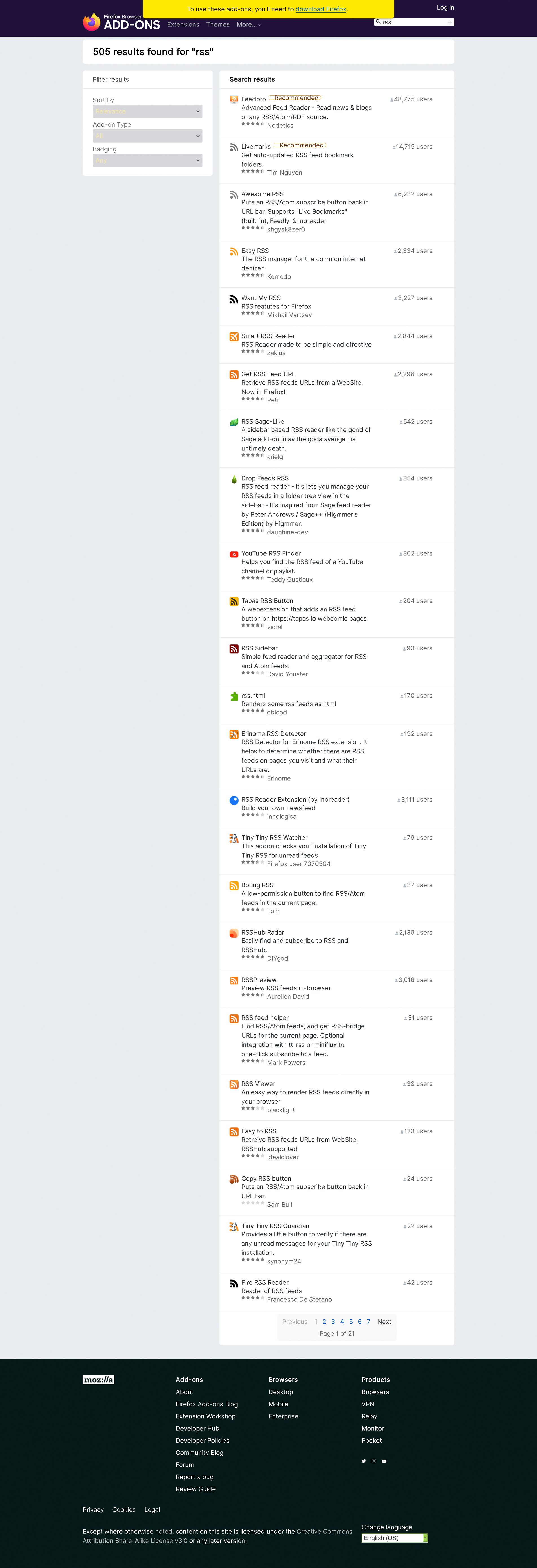 Mozilla knows very well that this doesn't work. 60% of people do not install any extensions, while those that do, focus almost entirely on adblockers and additional languages. And they will never install an RSS extension if they don't even know what RSS is. The most installed RSS addon clocks at only 48775 users (November 2024); the second - at 14715. The others have a few thousand installs at most, and together they all add up to under 100k, which is less than 0.1% of Firefox users, or about one hundred times less than the in-built button's usage stats. Mozilla has access to all this data and perfectly realizes how removing this feature from the UI was basically equivalent to removing it from the public consciousness. Anyway, after the standard "just use addons!" Mozilla excuse to delete features, Alex Faaborg [:faaborg] (Firefox UX) has appeared and said this: